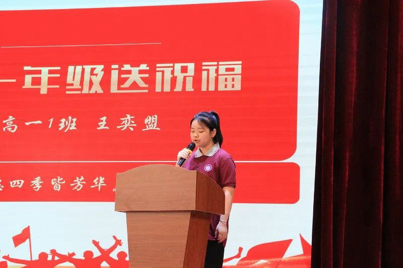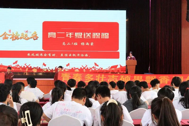 随后,非毕业年级也为毕业年级送上了最诚挚的祝福。高一学生代表王奕盟和高二学生代表杨雨蒙分别进行了讲话,祝愿学长学姐们能蟾宫折桂,同时高一高二的同学们也要学习他们身上的拼搏精神。